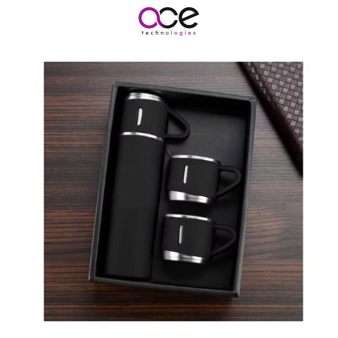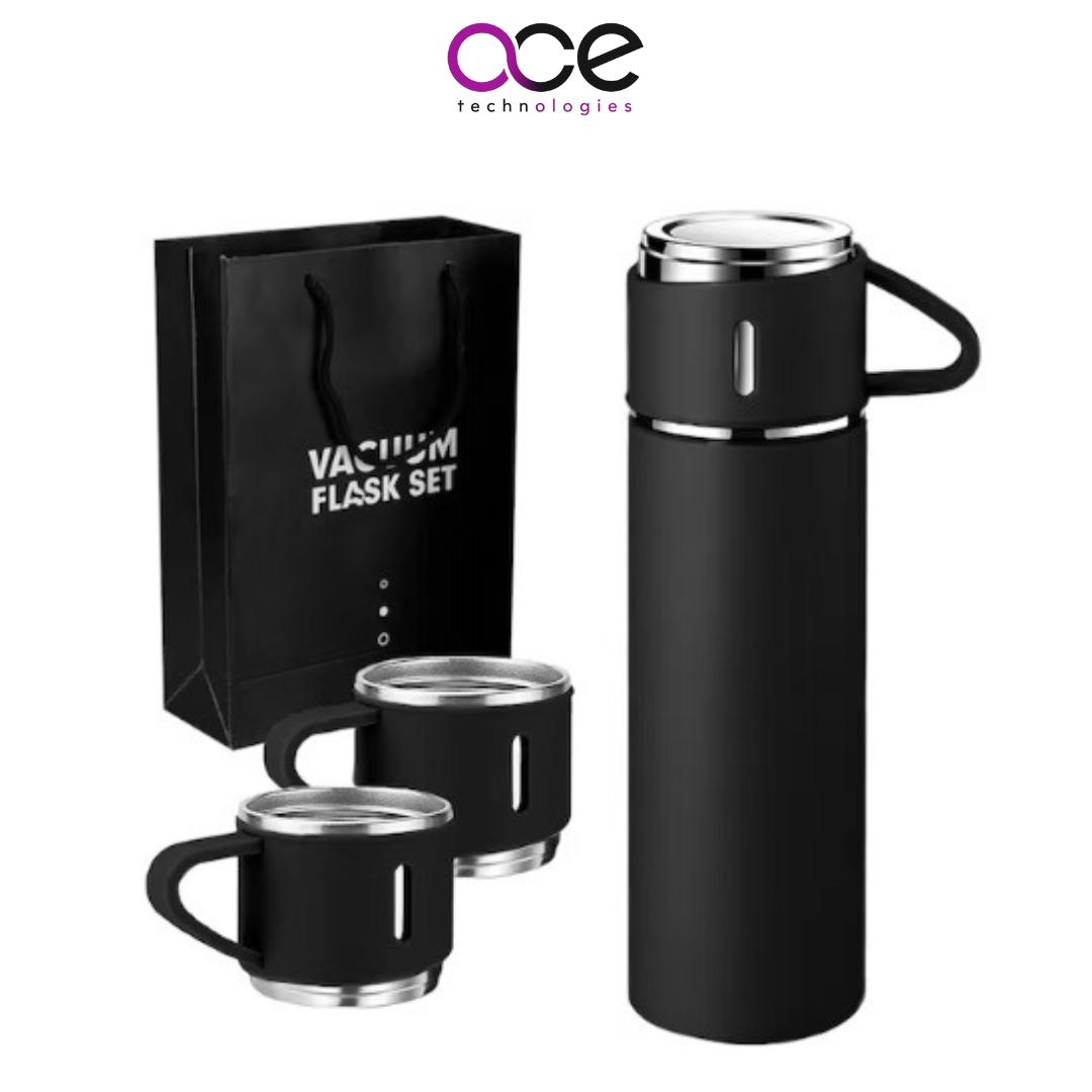 Este termo no es como los demás, con un diseño sofisticado que incluye tres tapas multifuncionales y una estructura de acero inoxidable que garantiza su durabilidad y resistencia.